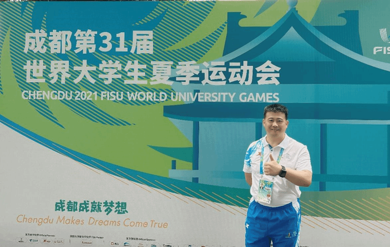 王成老师作为排球项目国家级裁判员,他亲历了中国承办的北京(2001)、深圳(2011)、成都(2021)三届世界大学生夏季运动会的三次大运圣火点燃。此次能够参加成都第31届世界大学生夏季运动会排球项目的执裁工作令他无比自豪,开幕式上王成表示,作为一名在西工大从教整整30年的高校体育教育工作者,如此近距离的感受习近平总书记对于大学生体育运动的关注与重视,倍受鼓舞,更加坚定了用体育的力量改造世界的初心使命,也同样期待2023年的成都故事可以成就世界各地年轻人的梦想。