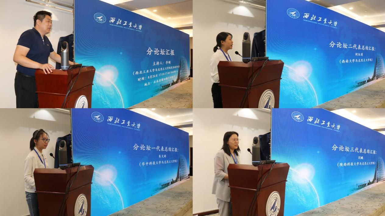 分论坛汇报环节由学校马克思主义学院党委副书记李刚主持。华中科技大学马克思主义学院讲师朱文婷、西南大学马克思主义学院讲师何红连、陕西科技大学马克思主义学院副教授闫鹏分别代表三个分论坛作总结汇报。