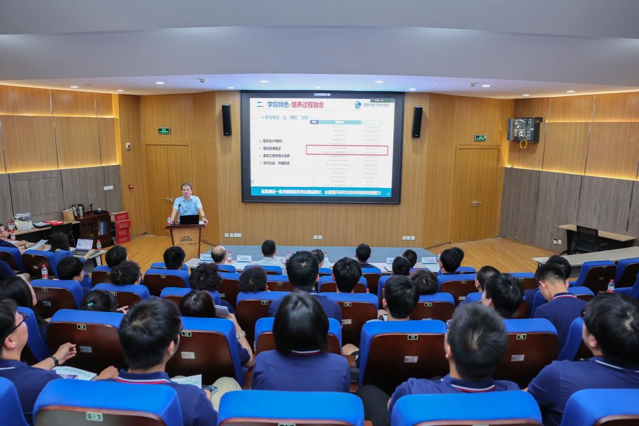 缑林峰向大家介绍了学院2023级新生整体情况,并围绕学院定位、学院特色、实践派出情况和学生成长规划等方面进行了深入阐释。其中,2022级已派出到企业的硕士生杨一琰、钱博也进行了专业实践经验分享。卓越工程师是工程技术创新的核心力量,卓越工程师培养重在工程,贵在卓越。缑林峰希望同学们胸怀天下,志存高远,将人生理想融入国家和民族的事业中,常修常炼、常悟常进,在今后的学习和专业实践中得真知、得成长、得卓越。
