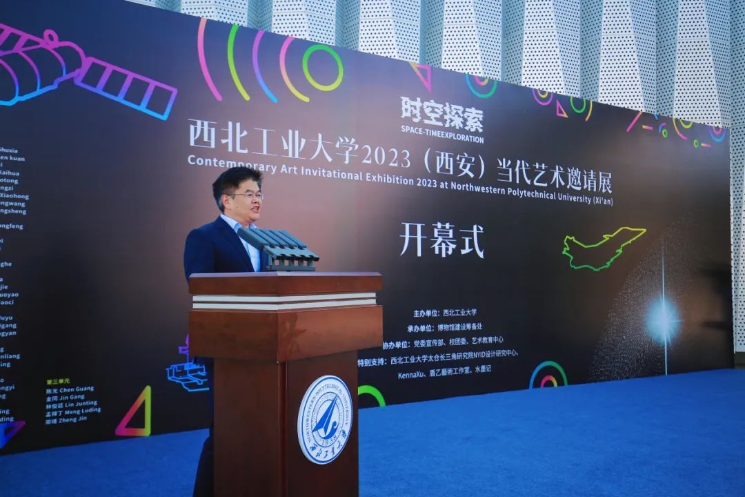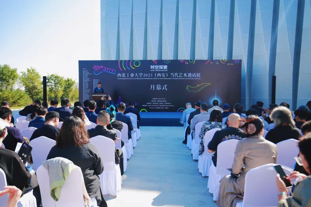 15日,“时空探索——taptap点点体育2023(西安)当代艺术邀请展”开幕仪式在军工素质教育实践中心(博物馆)举行。校党委副书记、党委宣传部部长杨晓与120余位校友、嘉宾出席开幕仪式。