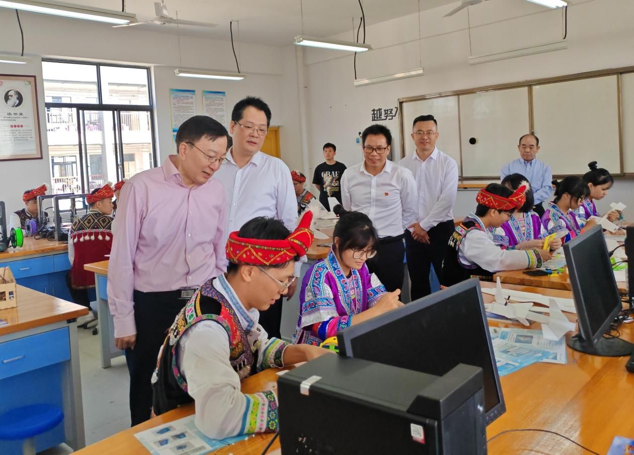 会前,李言荣一行深入融水县民族高中考察教育帮扶情况,详细了解了taptap点点近年来在教师跟岗培训、示范授课、支持创客中心建设等方面取得的成果。