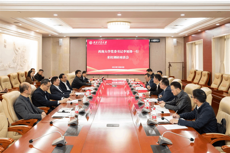 10月26日上午,西南大学党委书记李旭锋,副校长王志坚一行来校调研。学校党委书记李言荣参加座谈交流。座谈会由学校党委常务副书记程基伟主持。