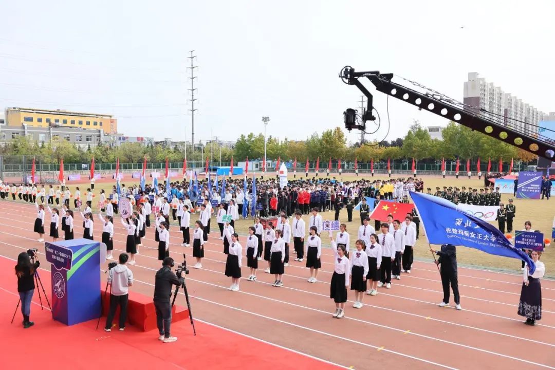庄严护卫着国旗、校旗和奥林匹克会旗进入会场
