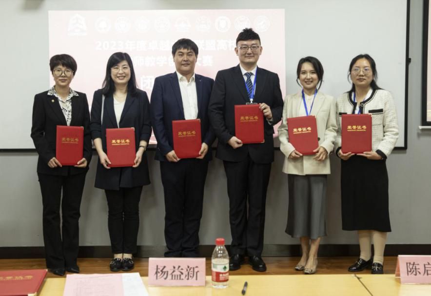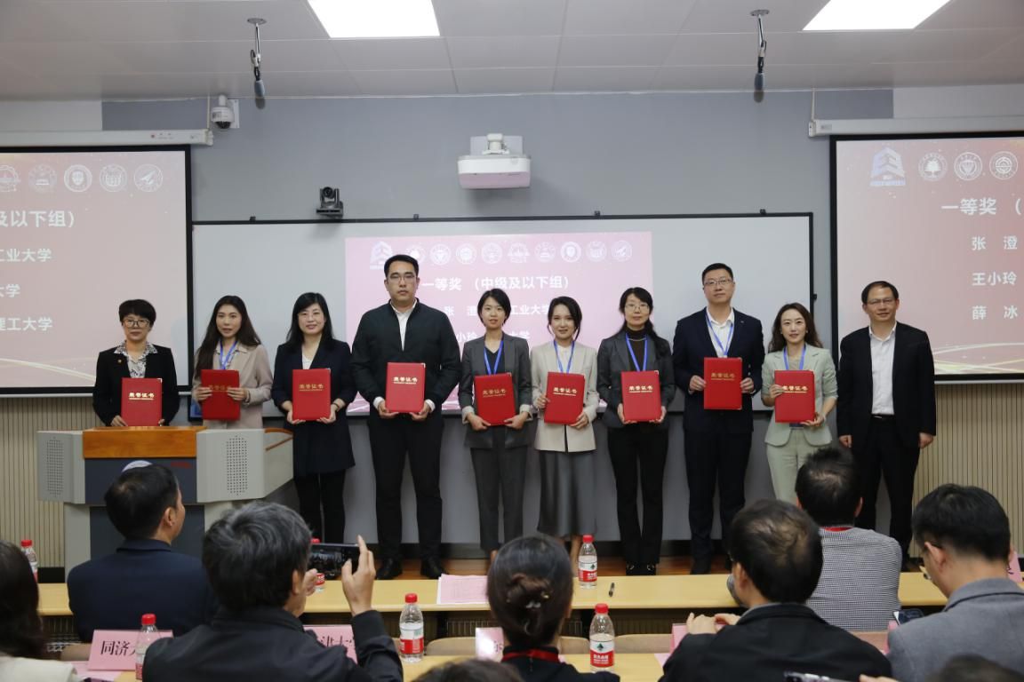 二等奖部分获奖教师合影,郑烨副教授(右三)登台领奖