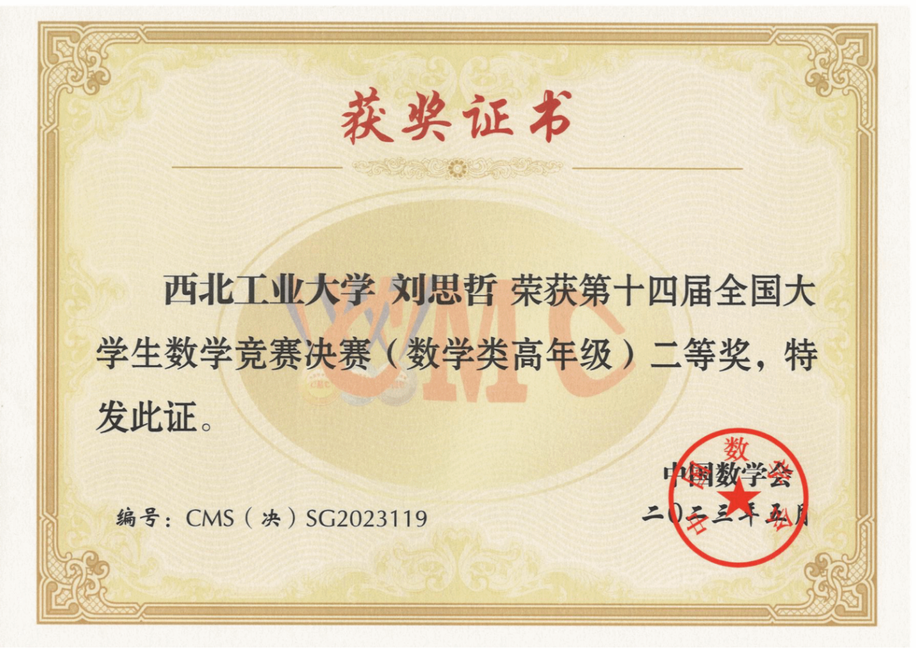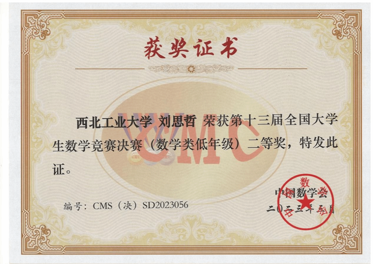 一直以来,刘思哲都对数学学科保持着浓厚的兴趣。让概念、定理、公式严丝合缝地“配合”,解决各式各样的难题,刘思哲十分“痴迷”这一充满挑战的过程。在兴趣的驱使下,刘思哲高考后毅然选择了西工大数学与应用数学专业。随着本科对于数学学习的不断深入,他也在钻研中逐步总结出了一套自己的学习方法。