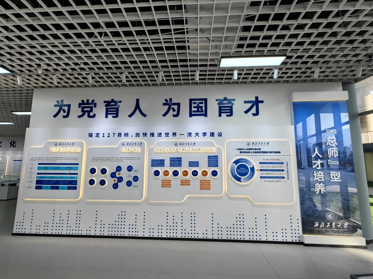 学校“总师”型人才培养展馆前身为2016年建设的科技艺术馆,自2023年暑期开始由教务处负责设计策划,历时近4个月建设完成。展馆的建设得到了学校发展规划处、国有资产管理处等部门的大力支持。