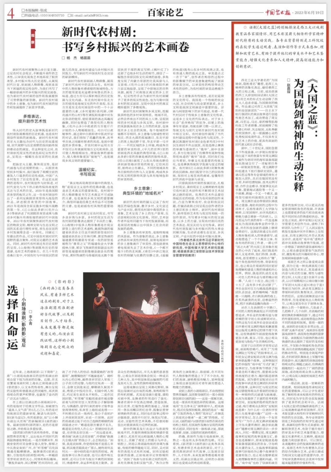 《中国艺术报》刊发中国文联评论文章《<大国之蓝>:为国铸剑精神的生动诠释》高度评价本剧在人才培养工作中的意义。