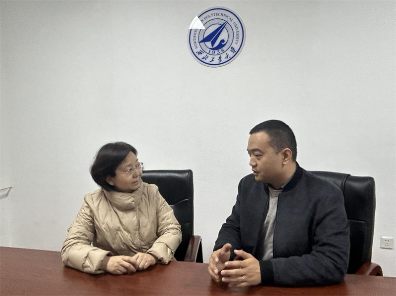 张艳宁教授(左一)指导学生刘启兴开展工作