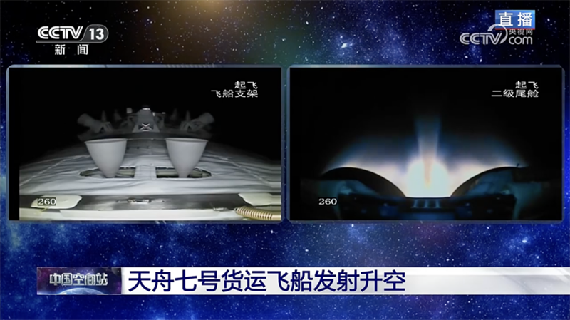 此次发射任务中,天舟七号货运飞船装载了航天员在轨驻留消耗品、推进剂、应用实(试)验装置等物资,并为神舟十七号航天员乘组送去龙年春节的“年货”。