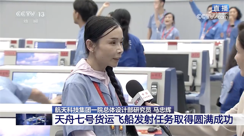 她在发射现场接受央视记者采访,简要介绍了本次发射任务中长征七号火箭的基本情况,分享了发射任务取得圆满成功的激动心情。