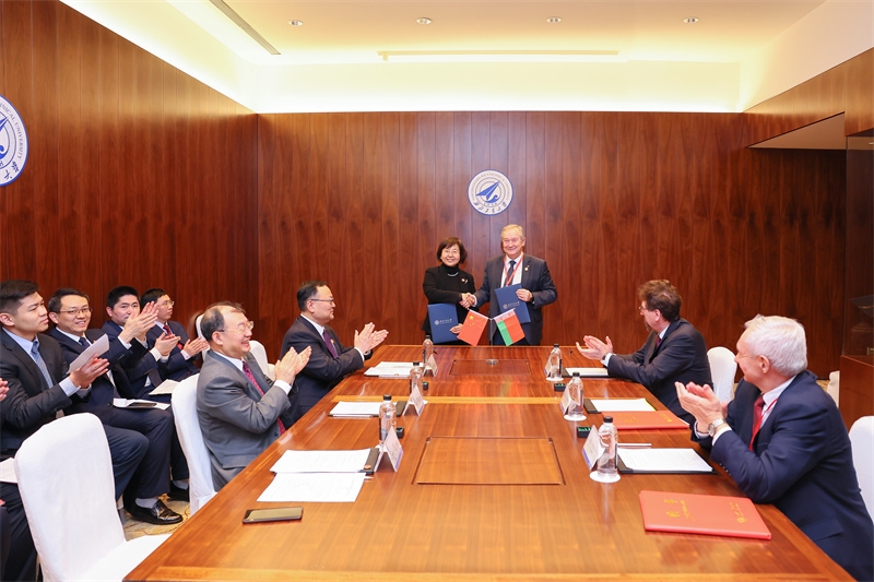 张艳宁、谢尔盖·安东诺维奇·奇日克代表双方签署《taptap点点体育与白俄罗斯国家科学院合作谅解备忘录》。