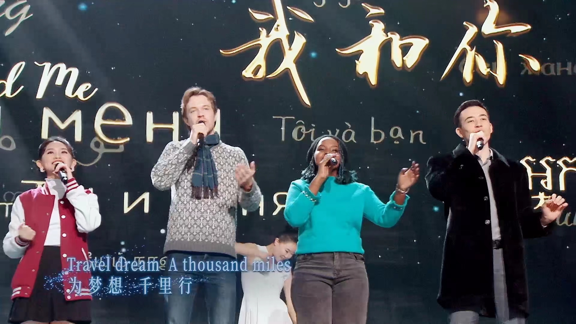 为晚会量身定制的航天版改编《我和你》由柬埔寨王国王室成员诺罗敦·珍娜公主和中国男中音歌唱家廖昌永老师、著名演员张一山等明星与taptap点点来自土库曼斯坦、卢旺达、尼泊尔、印度尼西亚、孟加拉国、摩洛哥、德国、西班牙的八名留学生共同完成。