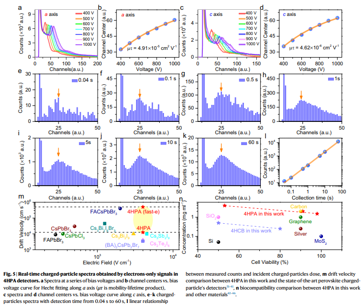 研究亮点二:基于脉冲探测法,4HPA探测器可实现对高能粒子(241Am 源)的实时能谱探测,能量分辨率高达36%,单次能谱采集时间可快至3 ms。
