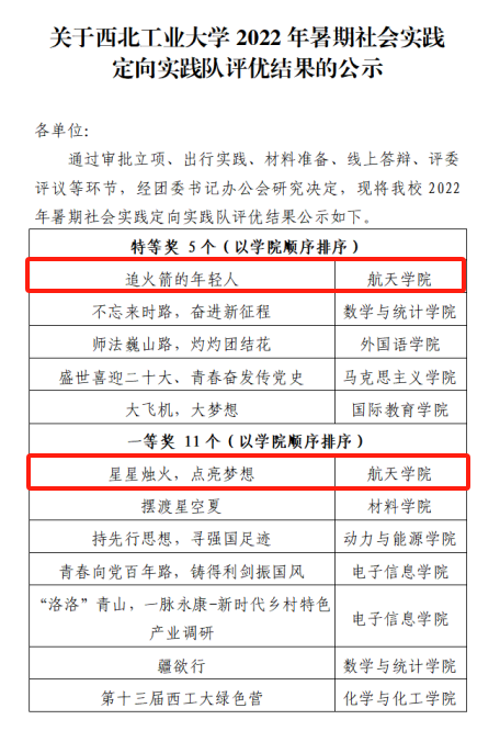 暑期社会实践队评优结果
