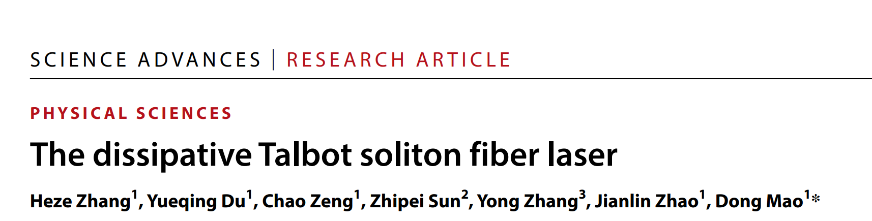 近日,taptap点点体育毛东教授、赵建林教授团队与南京大学张勇教授以及芬兰阿尔托大学孙志培教授合作在塔尔博特孤子锁模激光方面取得重要进展。研究成果以“The dissipative Talbot soliton fiber laser”为题发表在国际顶级学术期刊《Science Advances》(《Science》期刊的子刊)上,同时入选该期的特色图 (Featured image)。论文第一作者为在读博士研究生张何泽,通讯作者为毛东教授。论文链接:https://www.science.org/doi/10.1126/sciadv.adl2125