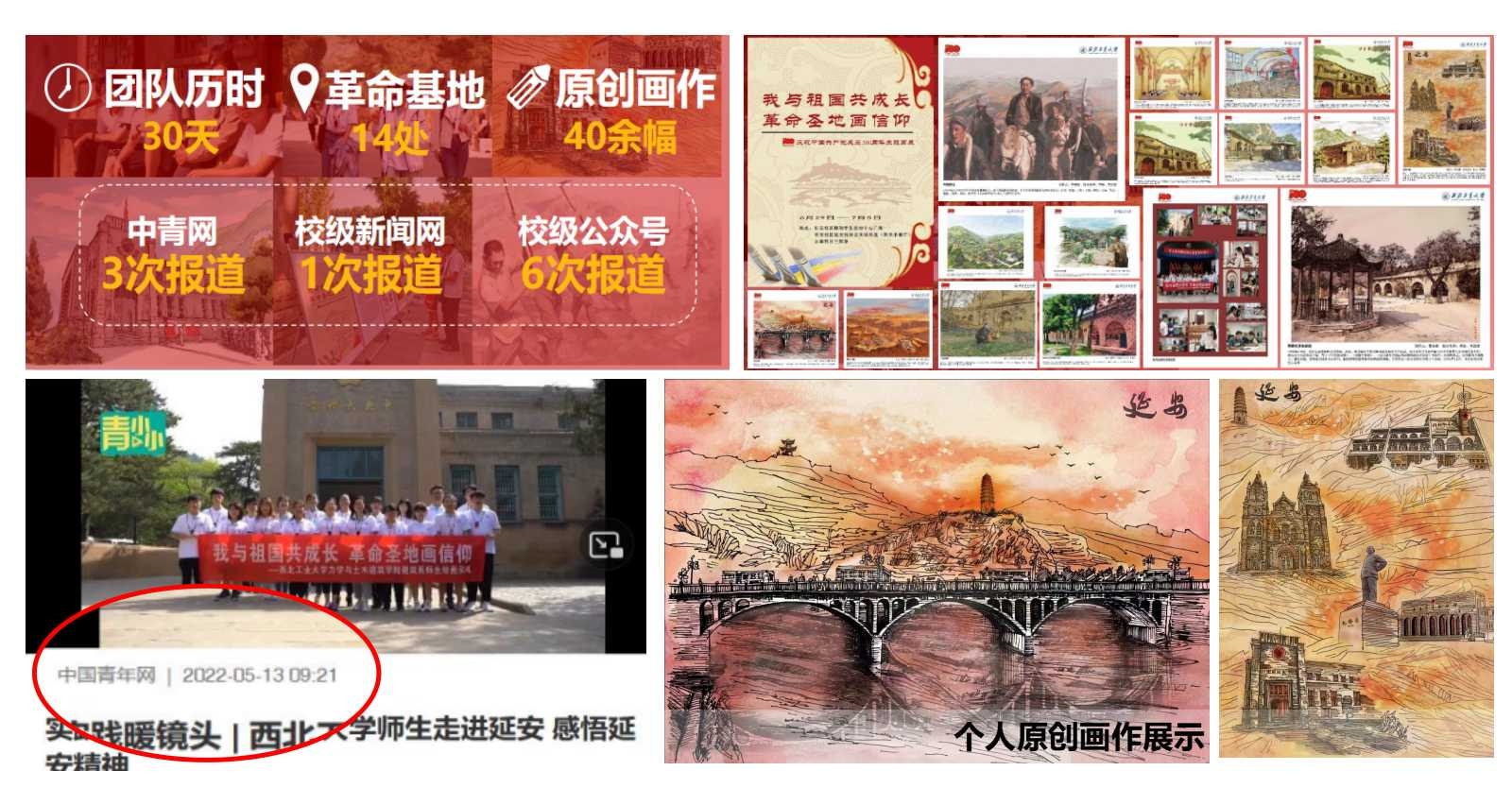 建党百年之际,她组织策划并作为主创完成“我与祖国共成长,革命圣地画信仰”主题画展,入选taptap点点体育社会主义核心价值观精品项(全校仅7个),获中国青年网3次报道、陕西省教育厅网站报道。