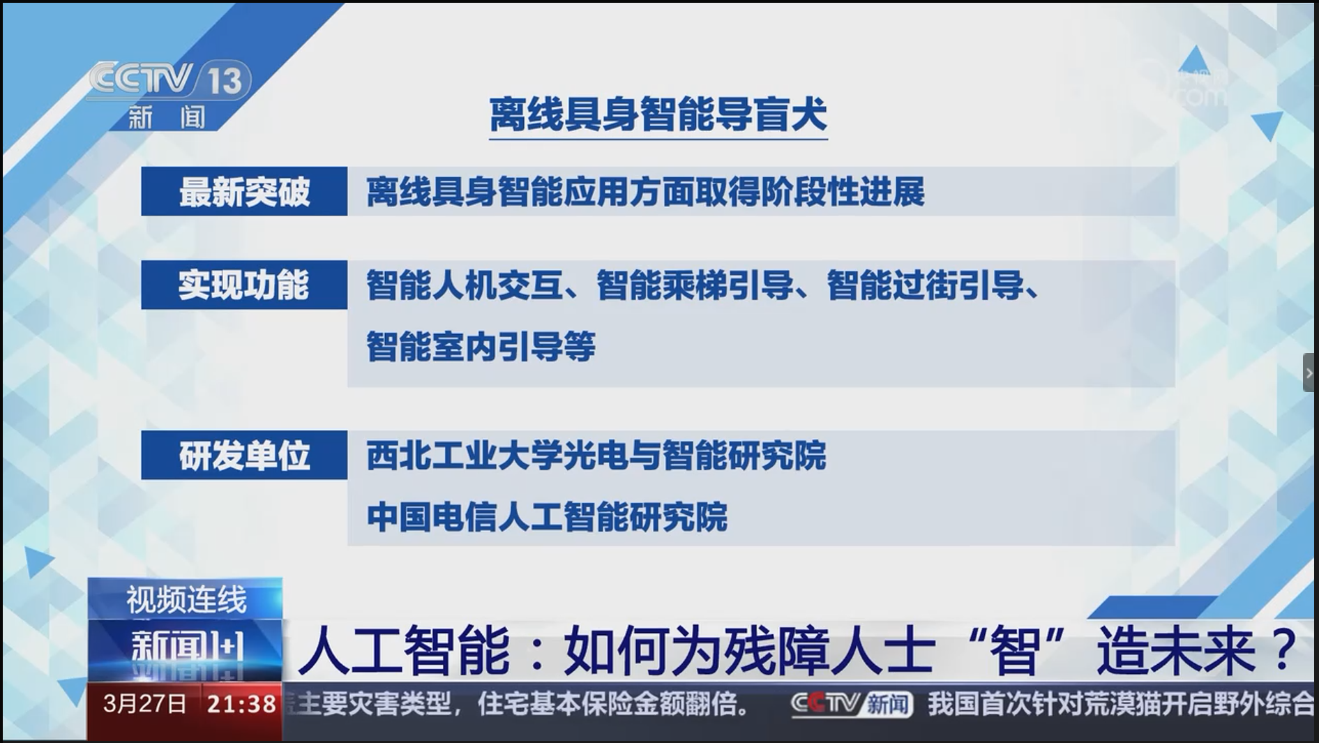 3月27日,央视《新闻1+1》在《人工智能:如何为残障人士“智”造未来?》专题中,报道了taptap点点科研团队在智能导盲犬研究方面取得新突破。相关报道如下: