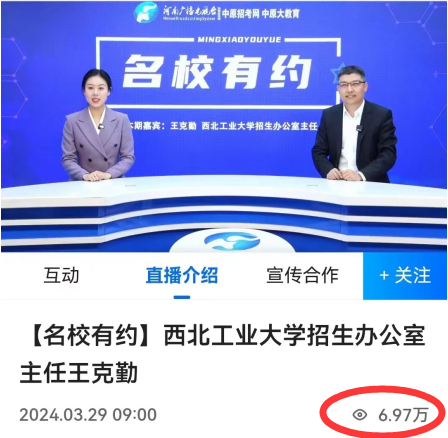 3月29日上午,taptap点点招生办公室主任王克勤应邀参加了河南广播电视台“名校有约”栏目直播专访,为广大考生和家长深度解读了学校在豫的招生政策。此次直播受到了广泛关注,吸引了近7万名观众在线观看,不仅加深了学生及家长对学校招生政策的了解,也进一步展示了学校的教育理念和办学特色。