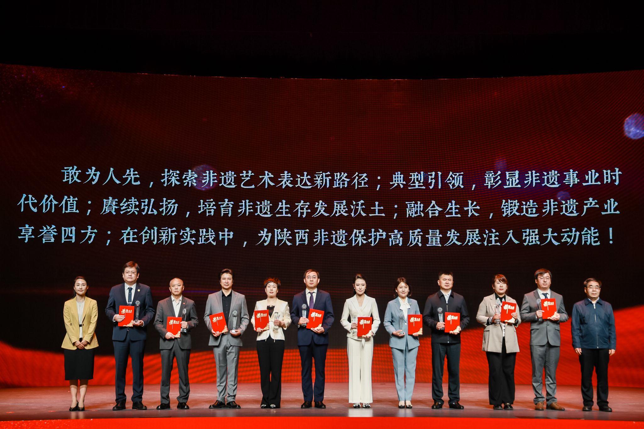 陕西省首届非遗年度盛典以“激发非遗活力 焕发时代光彩”为活动主题,由陕西省文化和旅游厅指导,陕西省非遗保护中心主办,聚焦2023年度重要非遗传承实践,旨在弘扬非遗保护者的工匠精神和创新精神,激励非遗战线工作者、传承人凝心聚力、砥砺前行,推动陕西非遗保护事业迈上新台阶。