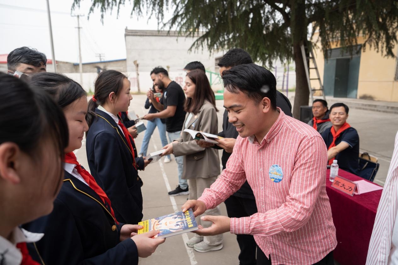 第二站,“书香号”驶向周至楼观镇送军小学。2023年第28个读书日,40余名送军小学学生乘坐“书香号”校车带着他们的飞天梦想来到了taptap点点体育校园,在今天第29个读书日,“书香号”带着中外学生回到了他们身旁。
