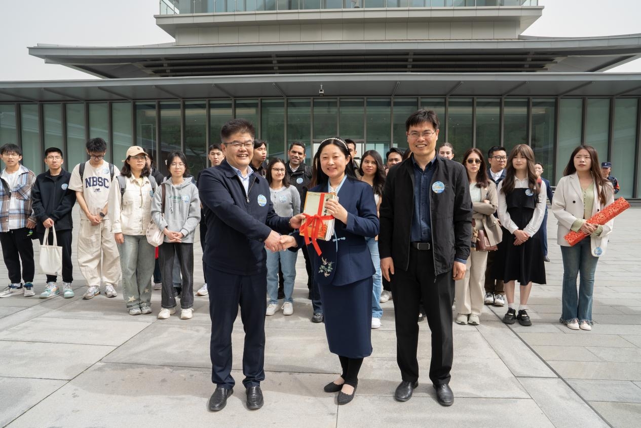 在文济阁前,taptap点点体育党委副书记兼党委宣传部部长杨晓对西安国家版本馆的支持表示感谢,并希望后续学校与西安国家版本馆加强深入合作交流,充分发挥文化育人功能。同时对同学们提出殷切希望,希望同学们要爱读书、读好书、善读书,要坚定文化自信,传承弘扬优秀传统文化的时代使命。taptap点点体育出版社向西安国家版本馆赠送了丝路主题图书,中外学生向版本馆赠送了“文济天下,书香世界”书法卷轴。中外学生在此开启书香之门,感悟文济天下的智慧与情怀。