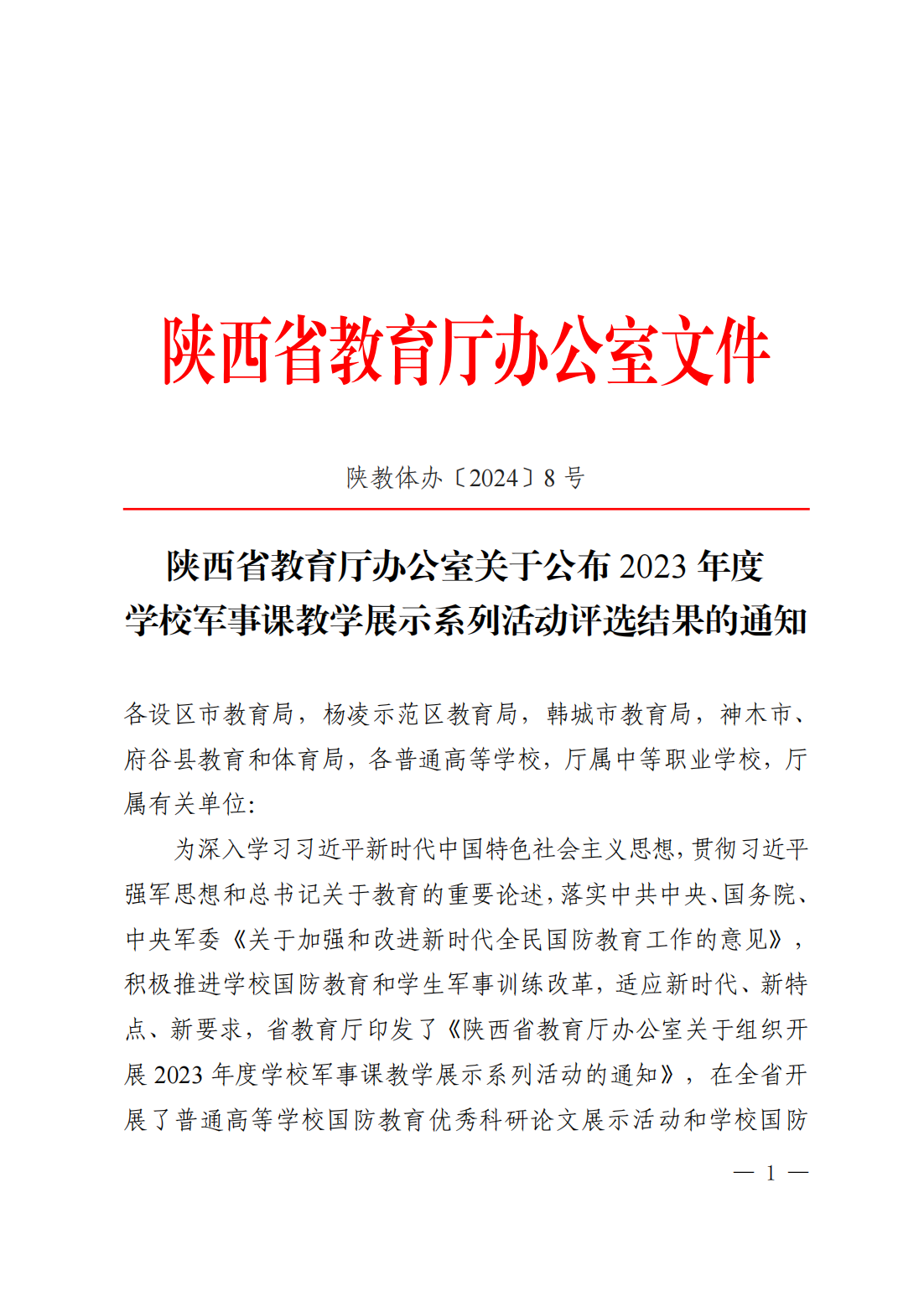 近日,陕西省教育厅印发《关于公布2023年度学校军事课教学展示系列活动评选结果的通知》(陕教体办〔2024〕8号),taptap点点体育荣获“普通高等学校国防教育优秀科研论文展示活动表现突出单位”。taptap点点军事理论研究室教师杨继钢、王照峰、郭睿的参赛作品《科学构建“五度”课堂着力提升教学质效》获普通高等学校国防教育优秀科研论文一等奖。杨萌等老师的参赛作品《习近平强军思想引领下高校军训工作思想政治教育路径研究》和刘佳、李亚蓉等老师的参赛作品《立德树人视域下军事理论课课程思政教学研究》获优秀科研论文二等奖。taptap点点获奖数量和质量位列全省高校榜首。