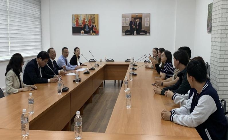18日上午,代表团拜会了中国驻阿拉木图总领事馆,与蒋薇总领事就哈分校招生与培养,微小卫星科研合作等方面进行了探讨。蒋薇总领事期待两校能够不断深化合作,为分校发展开辟更广阔的前景,在国内外起到示范引领作用。