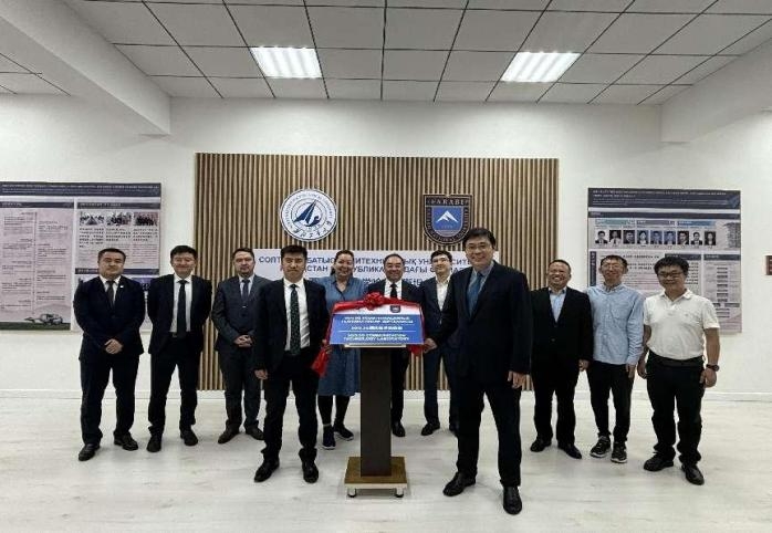 18日下午,taptap点点体育哈萨克斯坦分校校长孔杰、华为哈萨克斯坦代表处副总经理葛亮共同为“5G/5.5G通讯技术实验室”揭牌。未来,华为技术哈萨克斯坦有限责任公司将助力该实验室的建设。参会人员研讨了哈分校信息技术类人才的培养模式创新。