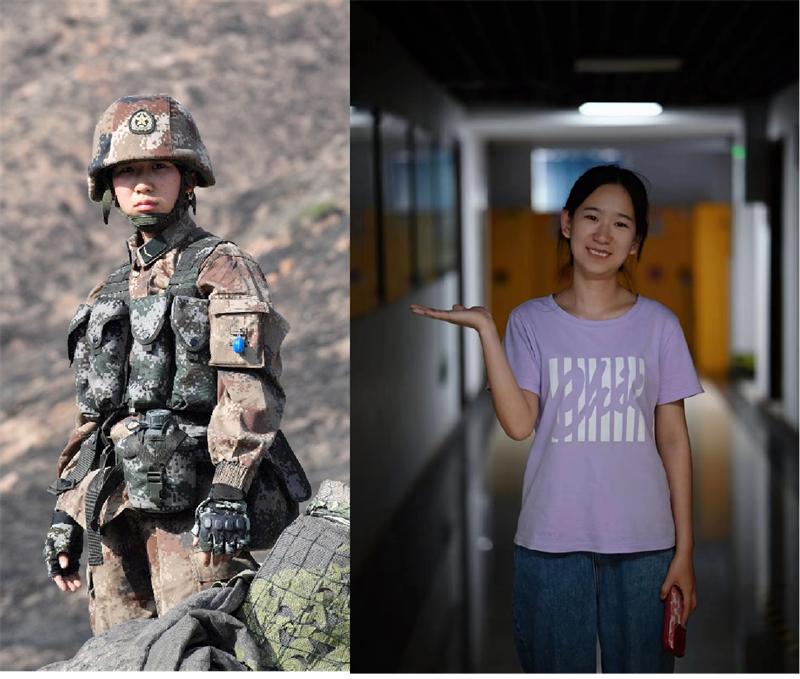 “每个女孩都有穿婚纱的机会,但并不是每个女孩都有穿军装的机会”这句话在高中时就深深的烙在我的脑海里。大一期末看到学校的入伍宣传,我毅然决然的选择了报名参军。入伍期间,我被选拔到单位总部参加培训,正值晋北荒漠的冬季,因气候极度干冷,训练时指甲盖和手指连着的皮肤全部龟裂,被高度紫外线晒伤的皮肤沾水都疼,但当我看到一次次突破的成绩,打靶、战术、队列、体能、理论知识都名列前茅的时候,我为自己骄傲。你若问我苦吗?累吗?我会告诉你,再苦再累都是值得的,这是我一生的宝贵财富。“国无防不立,民无兵不兴”保家卫国终不悔,更多的是光荣与使命!