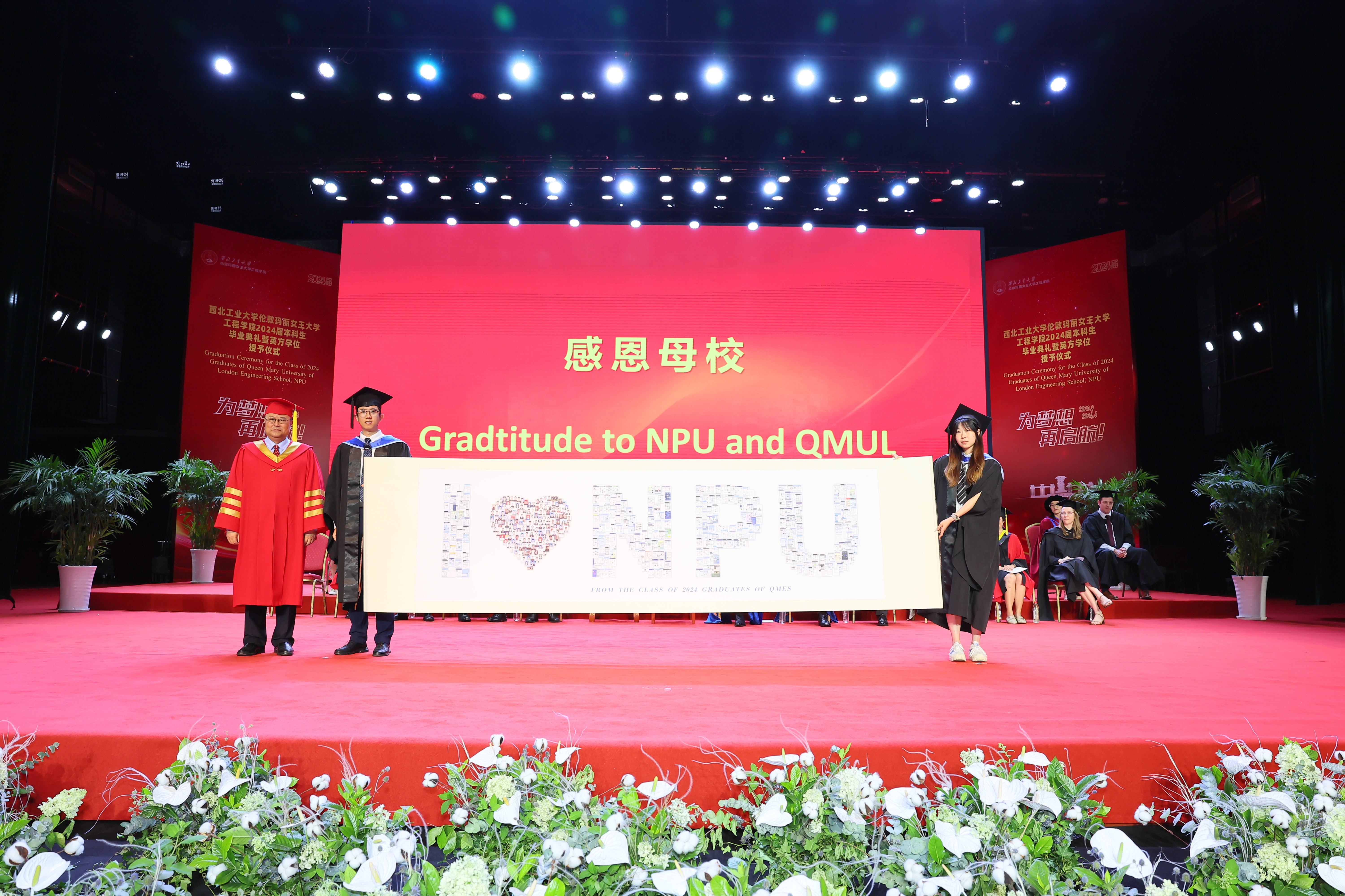 毕业生代表将大家精心制作的印有全体毕业生照片和优秀海报组成的画卷作为礼物送给母校,表达对母校深深的眷恋。宋保维、Colin Bailey 分别代表两校接受礼物。同时,为敬爱的师长送上最真挚的祝福,班主任代表,年级辅导员、院办工作人员代表等接受同学们献上的鲜花。