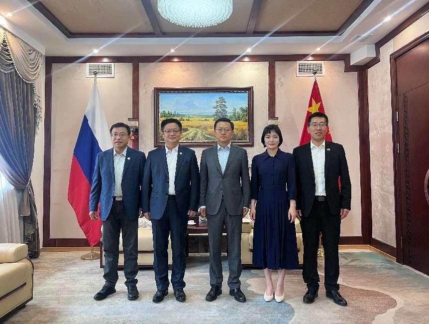 在喀山,代表团拜访了驻喀山总领事馆,受到总领事向波的热情接见。王宇波向总领事对学校对俄合作交流的大力支持表示衷心感谢,重点交流了“凌云班”本科2+2双学位联合培养项目的进展情况。向波表示,“凌云班”人才培养项目是中俄教育领域先行先试的典范,首届毕业生更是标志着优质项目结出了硕果,总领馆将持续支持项目的深入开展,并支持学校拓展与俄罗斯其他高水平高校开展合作。
