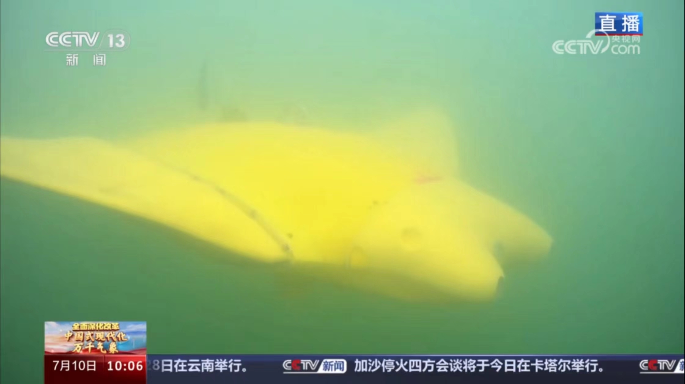 眼下有不少科技成果已经从实验室走向了市场,开始发挥作用。此刻,在南水北调水源地陕西商洛二龙山,由西工大水下航海器团队实施秦创原创新驱动平台研发的自主变形仿生柔体潜水器,正在开展新环境的测试工作。这个潜水器其实就是一条仿生鱼,据说游动起来堪比真鱼。接下来,我们马上连线正在现场的总台记者杨永青。