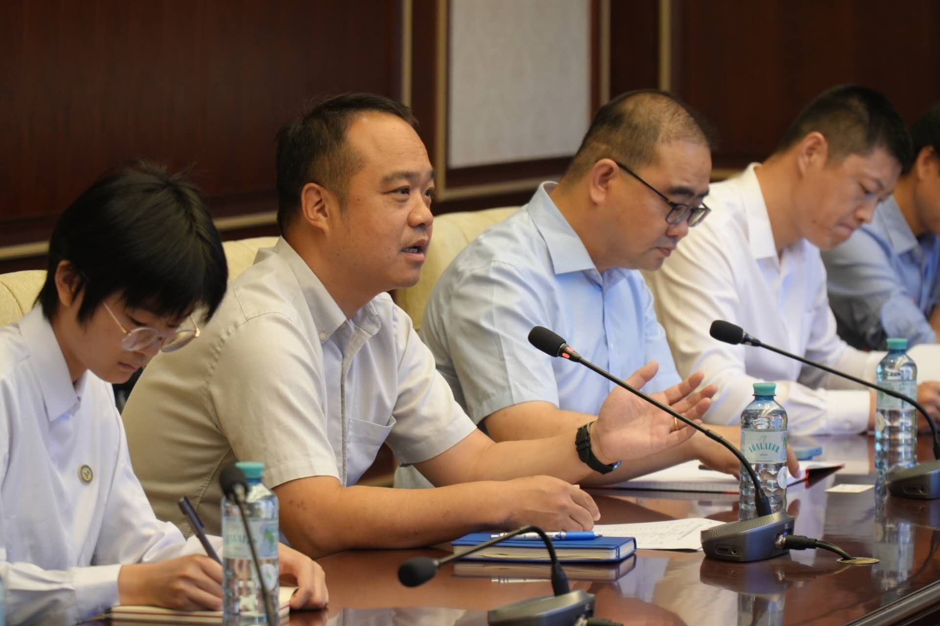 吴闻川向代表团汇报了学校以及首届铸剑班的相关情况,对代表团为我国外交事业所做出的辛苦付出和重要贡献表达了诚挚敬意,对此次师生一行的热情接待表达了衷心感谢。