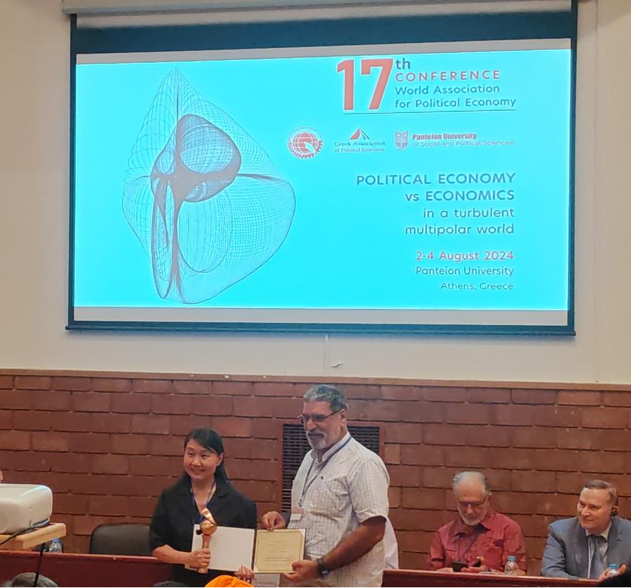 2024年8月1日-5日,taptap点点马克思主义学院院长杨云霞教授赴希腊参加了世界政治经济学学会(WAPE)第十七届论坛。该论坛由世界政治经济学学会主办、希腊政治经济学学会和希腊派迪昂大学承办。本届论坛以“多极世界格局下的政治经济学”为主题,来自中国、美国、加拿大、俄罗斯、英国、德国、意大利、奥地利、匈牙利、西班牙、挪威、芬兰、丹麦、爱尔兰、土耳其、希腊、巴西、墨西哥、澳大利亚、日本、韩国、印度、喀麦隆等20多个国家的近200名专家学者出席了会议。会议期间举行1次理事会会议、3次全体会议、45场分会研讨。在会议期间,杨云霞教授做了主旨报告“The New Look and Essence of Capitalist Monopoly on Intellectual Property”,并开展系列师资招聘、留学生招生宣传。