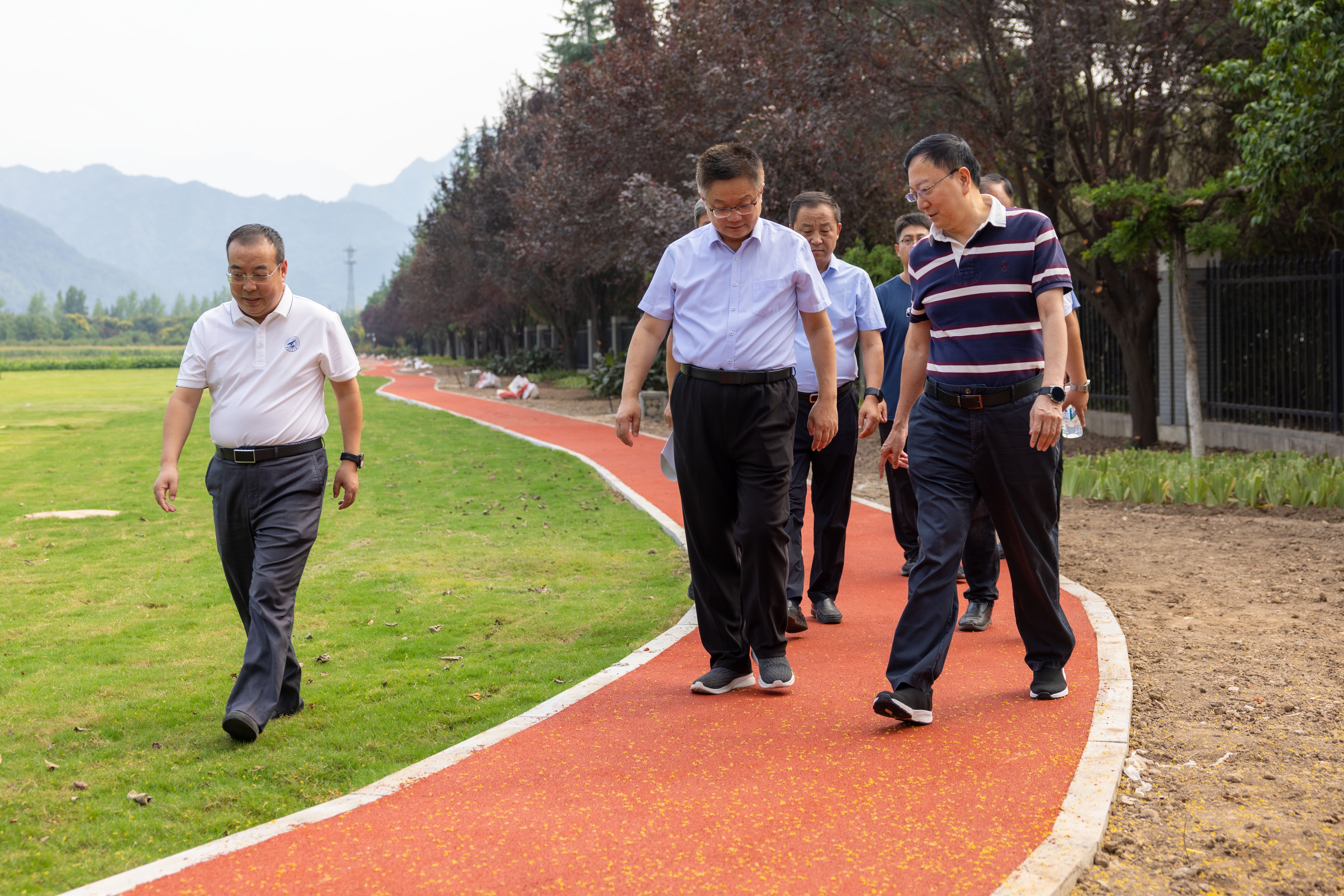 在长安校区东篱菊苑,李言荣查看了暑期建好的草坪、花园和人行步道,现场指导下一步建设工作。他仔细询问花园内种植草木的品种和生长周期,并对步道的铺设材质、宽度、走向提出了细致的要求。他说,校园环境提升直接关系到广大师生的切身利益,要秉持着追求一流的态度,一丝不苟、精益求精地把各项工作做好,让师生早日享受到优美的校园环境。