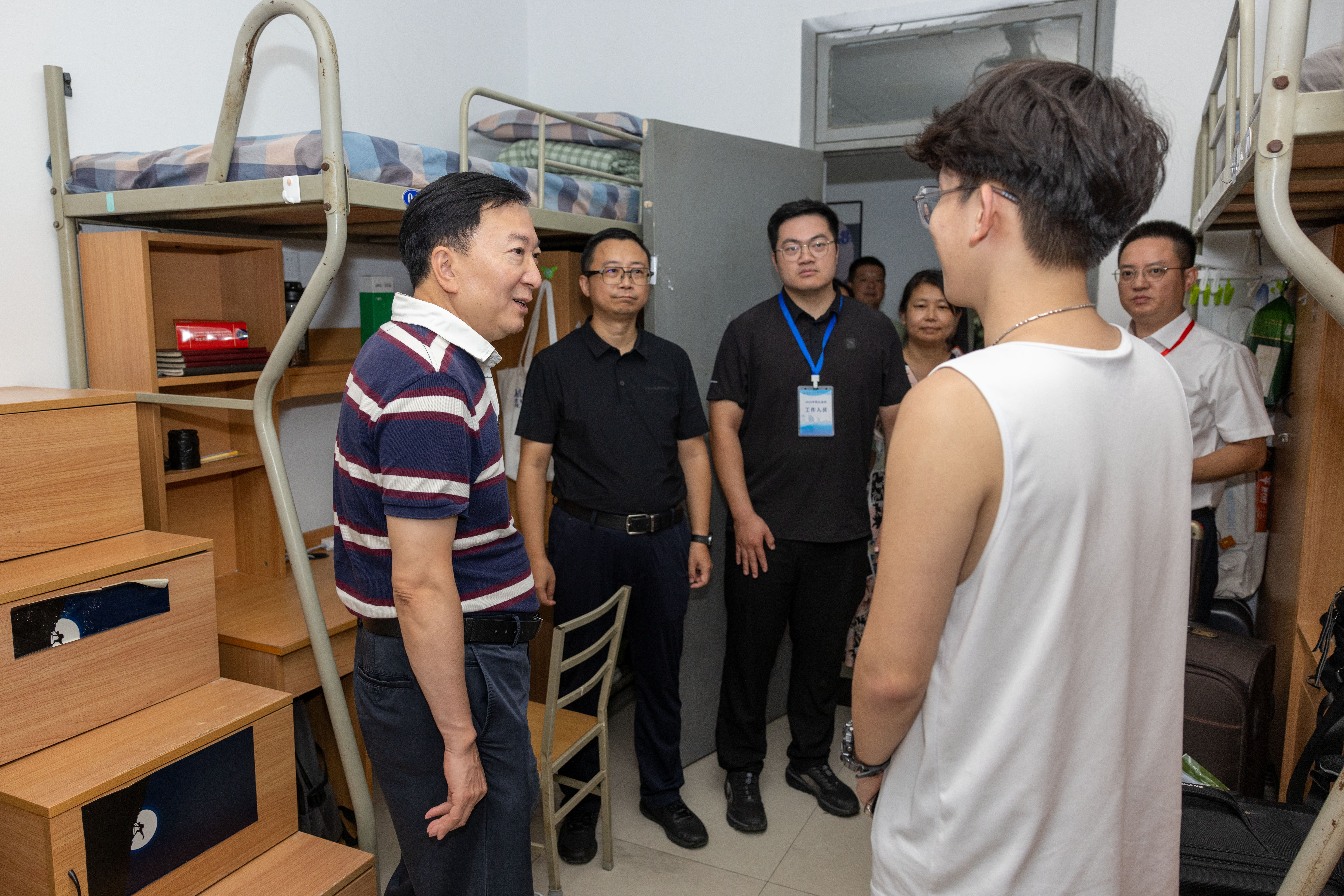李言荣一行还来到云天苑新生宿舍,查看学生住宿条件,了解新生的生活服务保障等情况。