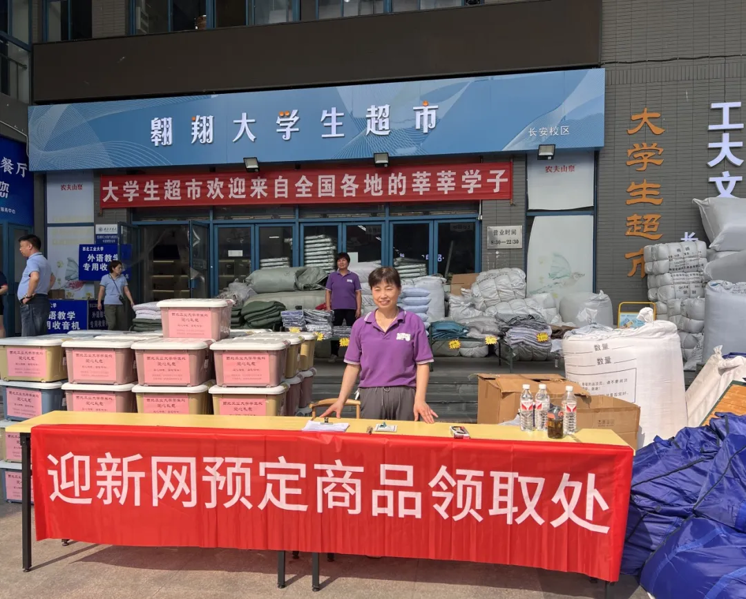 在迎新服务接待点,各位同学和家长可领取免费茶水、酸梅汤。新生接待期间,长安校区翱翔快递站增设大件快递免费送货服务,可在现场登记后送货。