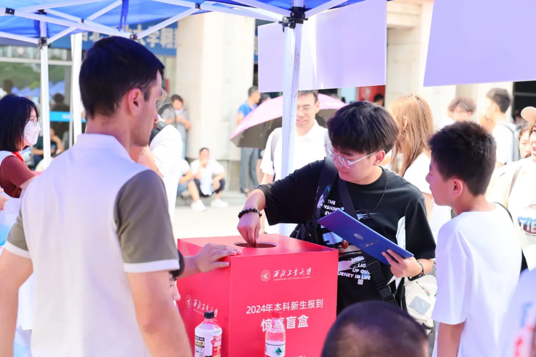 惊喜盲盒大放送!凡是到校报到的新同学,凭录取通知书即可抽取一张领奖卷,兑换惊喜盲盒,十种西工大定制文创,给你“实心实意”的爱!