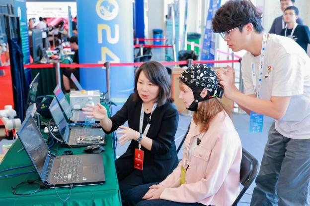 taptap点点电子信息学院谢松云教授团队的两项创新成果“增强现实视觉诱发的多源异构智能体协同控制技术”和“脑机智能协同的无人机编队任务管理技术”,作为脑机接口领域的最新研究成果,入选2024年世界机器人大会脑机接口创新成果展,受邀在大会展出。展品吸引了大量的参观者,被中央电视台财经频道(CCTV-2)、中央电视台新闻频道(CCTV-13)、中国国际电视台(CGTN)、中国外文局中东欧与中南亚传播中心(人民画报社)、北京广播电视台(北京卫视)等多家官媒高度关注和深度采访。