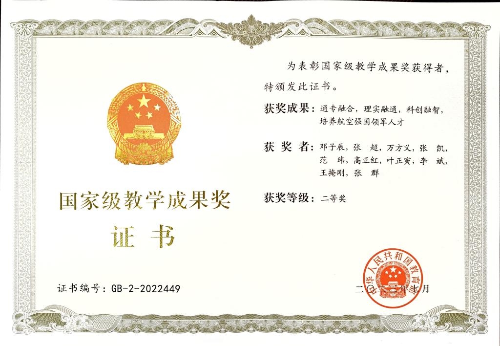 探索“总师型”研究生人才培养新模式。学院创新“进驻式”人才培养模式,外派指导研究生到航发商发、703所等开展联合攻关,深度参与型号设计过程,以项目为背景指导学生毕设选题,培养学生从工程中凝练、解决实际问题的能力。获批2项陕西省学位与研究生教育研究项目、1项陕西省专业学位研究生教学案例,获批专业核心课、研究生方法类课程等13项。获批优秀青年教师(吴亚军奖)特等奖1人次,力学学会优秀博士论文1人次。获得陕西省高等教育教学成果奖特等奖1项。