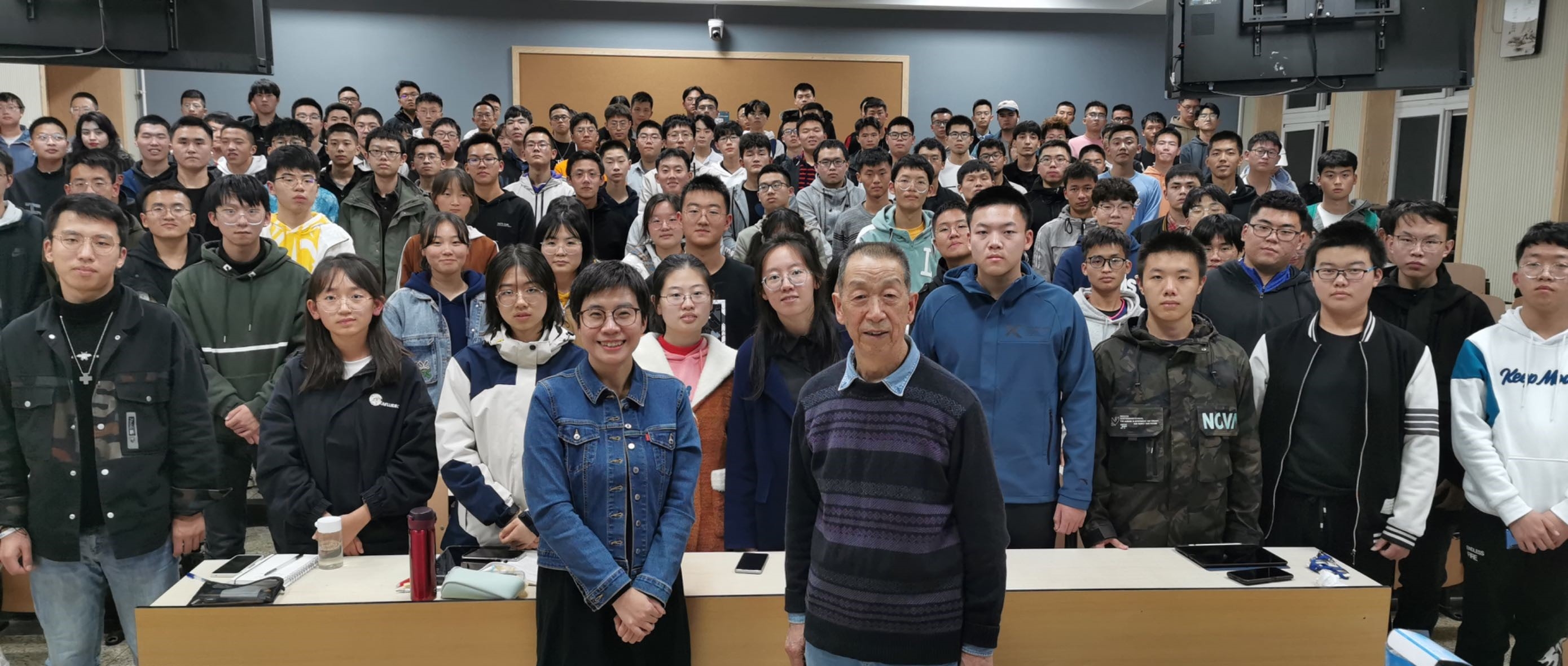 “蔡老师以他的导师王宏基老师的十六字箴言“实事求是,严谨认真,一丝不苟,精益求精”寄语我们,希望我们都能学有所成,学有所用。”