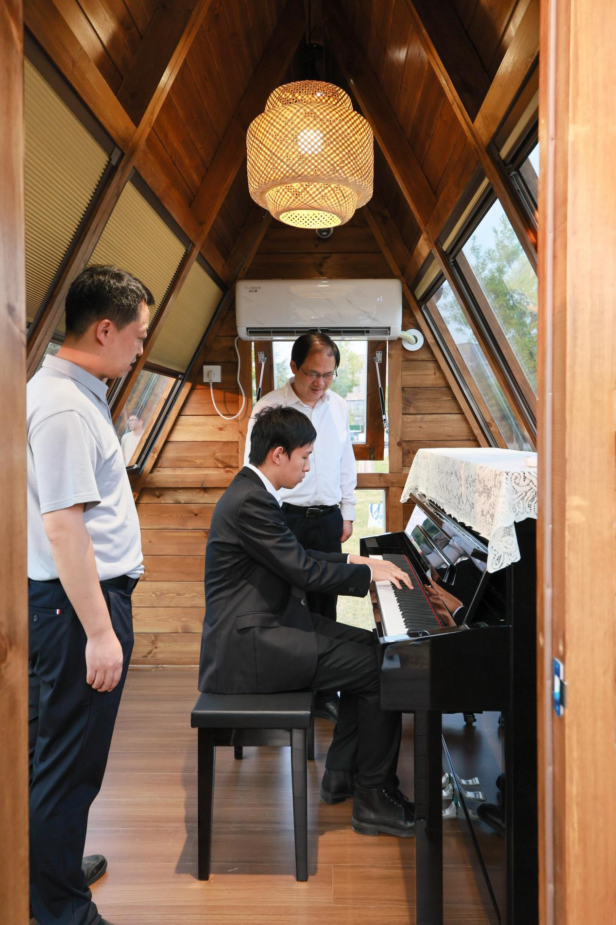 9月23日下午,长安校区钢琴木屋启用仪式在启翔湖畔举行,副校长、学校美育工作委员会主任杨益新发表致辞,他表示,钢琴木屋的启用是学校深化美育改革、提升学生综合素质的重要举措,也是各部门通力配合的结果。作为学校实施“校园美育文化营造行动”的重要组成部分,经过数月的设计、建设,“钢琴校园规划”的6间钢琴木屋在启翔湖畔和通慧园正式启用,力求把美育融入校园生活全方位。