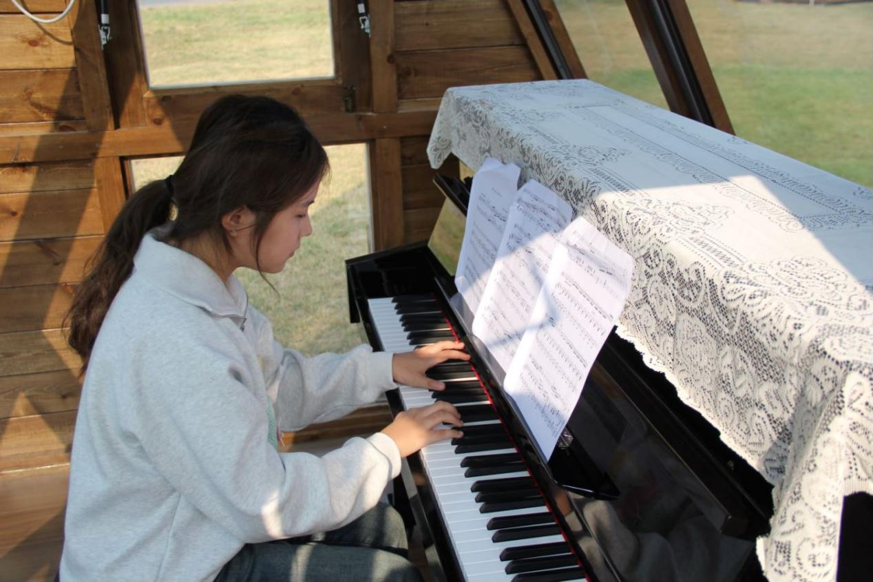 2021级计算机学院 王子乐:在夕阳的余晖中,湖畔的钢琴小屋映出日落前最后一抹温暖的金色光芒,犹如一幅动人的画卷。琴键在柔和的光影中跳跃,与中提琴温暖而深沉的共鸣相互交织,拉赫玛尼诺夫的练声曲流淌而出,悠扬、丰富而略带悲伤的旋律,仿佛在诉说着一段尘封的往事。在湖畔的钢琴木屋享受音乐,时间似乎凝固,音符在湖水的轻波中回荡,带来无尽的宁静与享受。