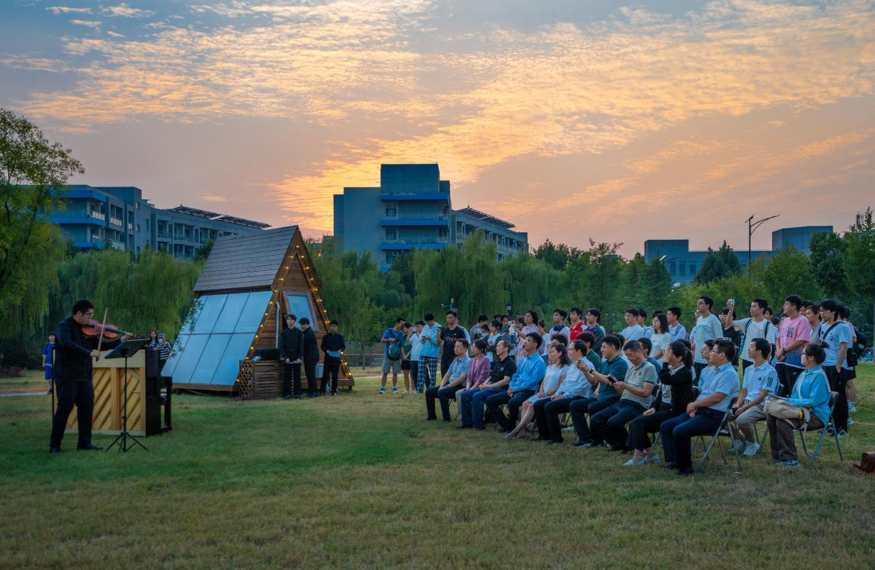2024级机电学院 檀思怡:随着第一个音符的缓缓流淌,整个湖畔仿佛被一股“神秘”的力量所笼罩,时间在这一刻变得缓慢而悠长。远处偶尔传来几声鸟鸣,更添了几分生机与活力。琴声、湖景、夕阳、微风,这一切都显得那么和谐、完美,仿佛是大自然特意为我们准备的一场视听盛宴。