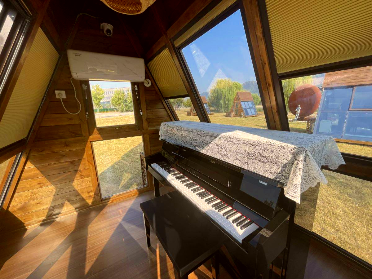 秦岭脚下,山水相宜。近日,在taptap点点长安校区启翔湖畔的大草坪上,6座钢琴小木屋正式落成并投入使用。