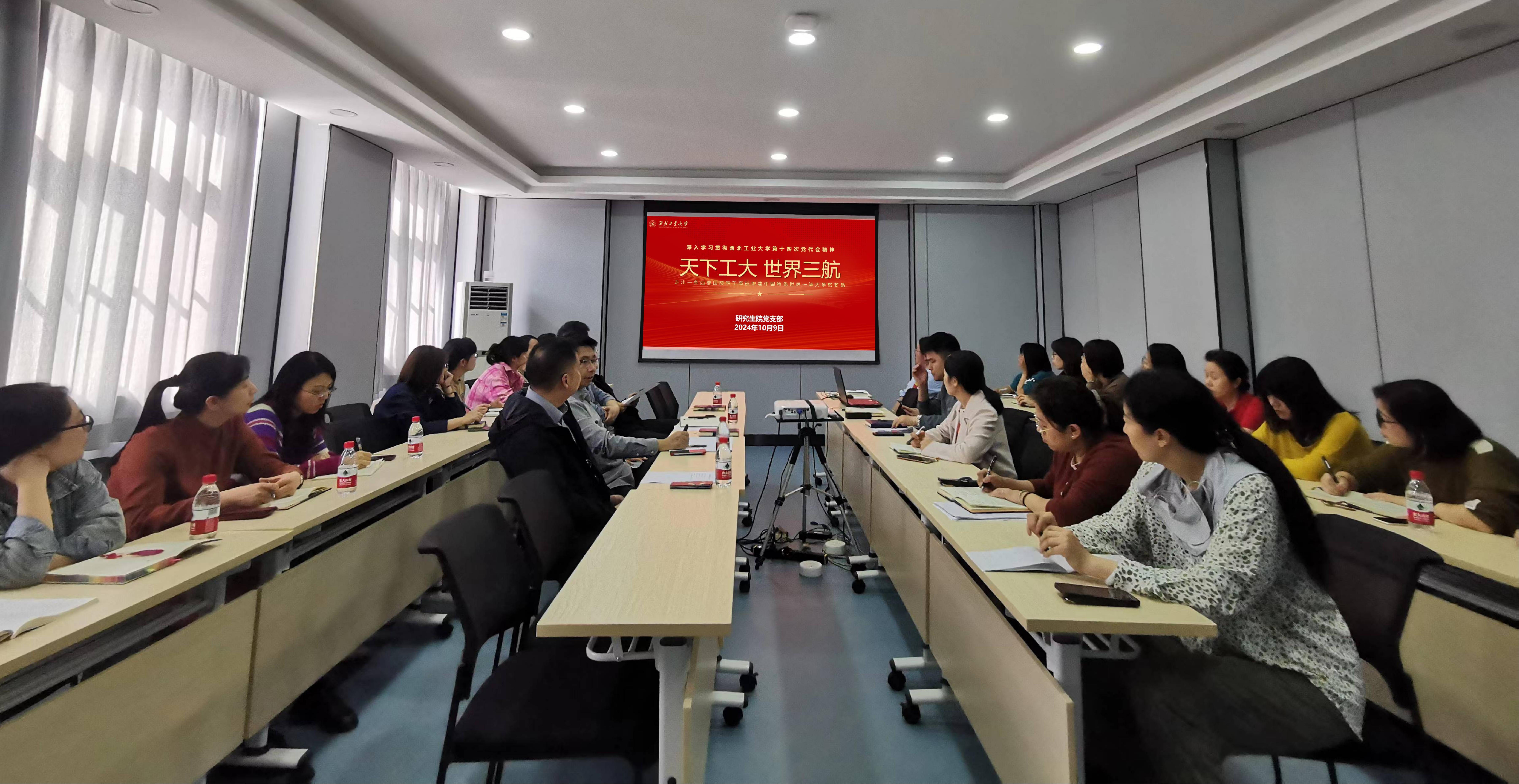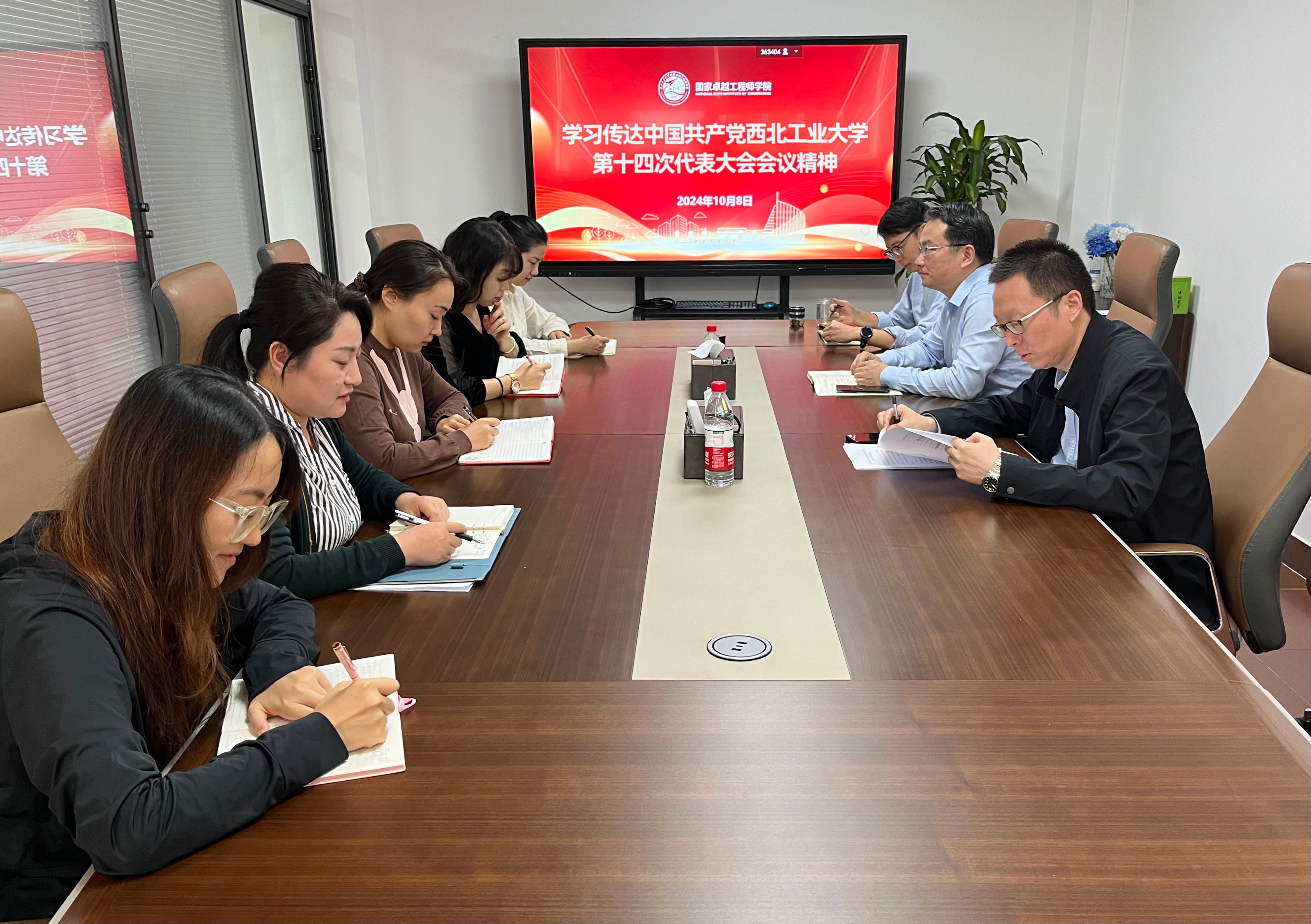 会议认为,刚刚闭幕的第十四次党代会是一次团结鼓劲、提振精神、求实奋进、面向未来的大会,对于解放思想、凝聚人心、勠力同心、踔厉奋发谱写中国特色世界一流大学建设新篇章、推进学校高质量发展起着至关重要的作用。深入学习宣传贯彻学校第十四次党代会精神,关系学校工作全局和事业长远发展,对于走出一条西部国防军工高校创建中国特色世界一流大学的新路具有重要意义和深远影响。全院上下要深刻认识学习宣传贯彻学校第十四次党代会精神的重要意义,进一步提高站位,以党代会精神统一思想、坚定信心,切实将党代会提出的目标任务和工作要求落到实处。