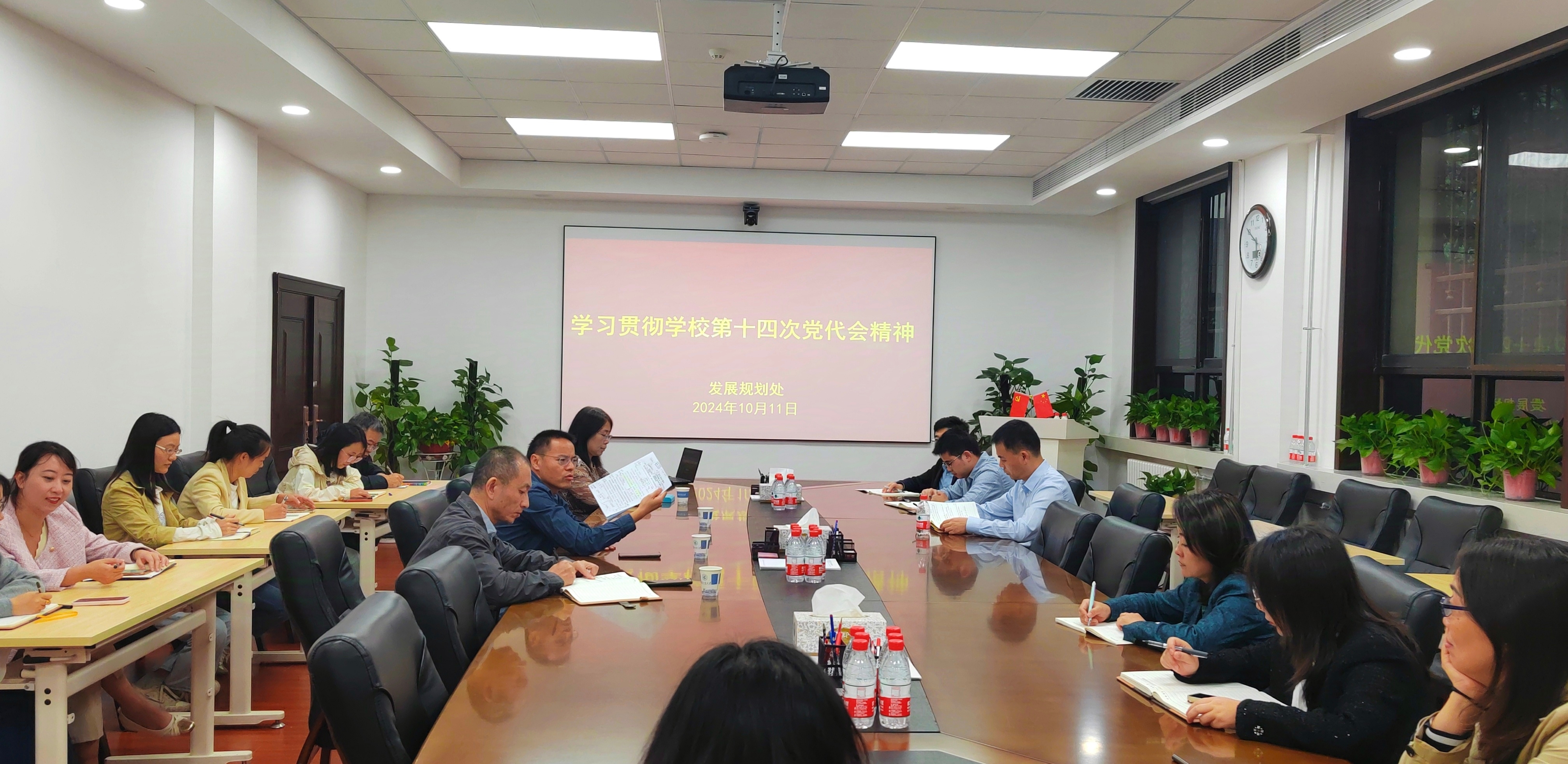 10月11日下午,发展规划处召开党员大会,传达落实学校第十四次党代会精神。会议介绍了第十四次党代会的整体情况,传达学习了党代会报告,并对报告主要内容和相关重点工作进行了详细研讨。会议由发展规划处处长甘雪涛主持。