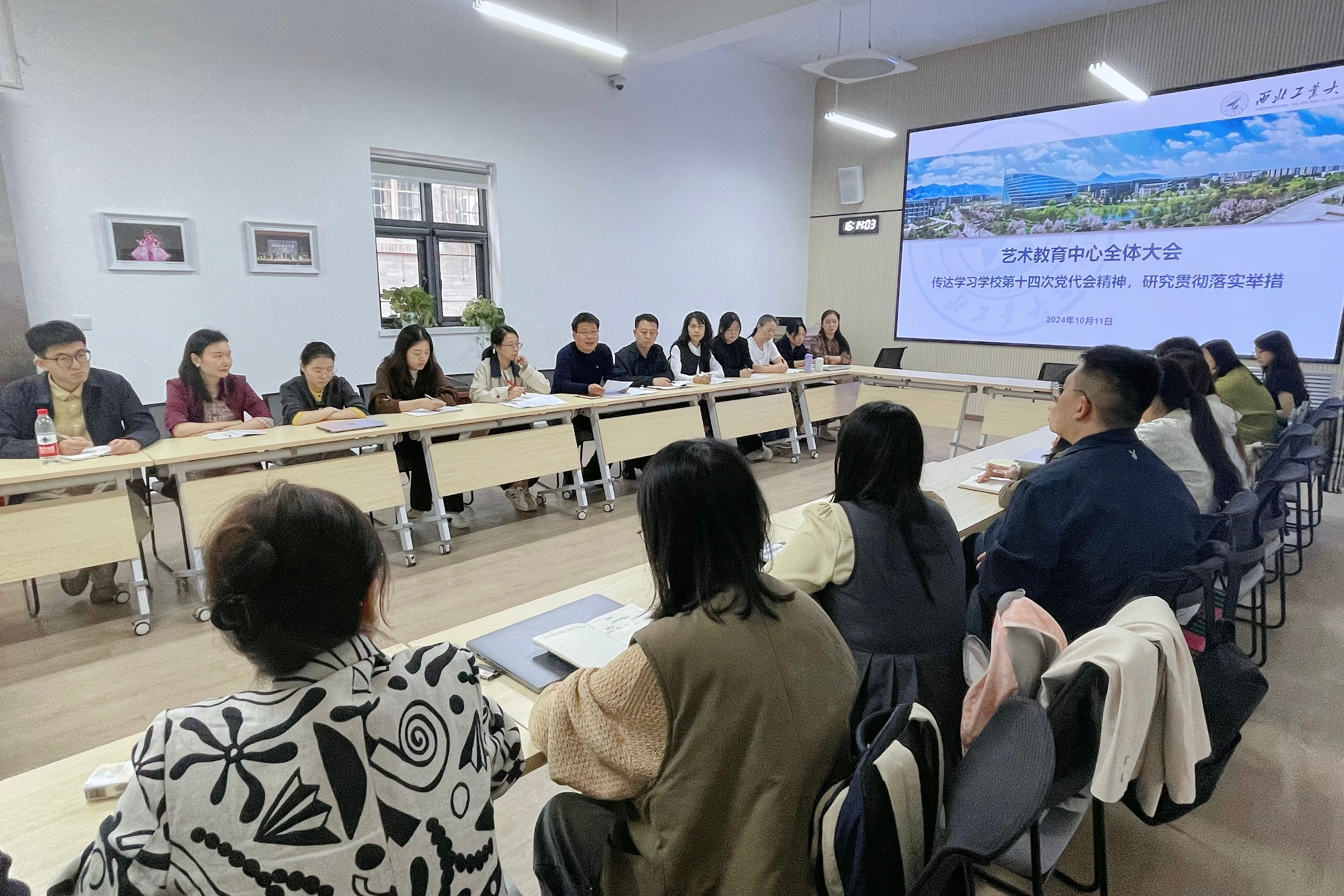 9月30日上午,艺术教育中心召开主任办公会传达学习学校第十四次党代会精神。会议由中心主任张清江主持。10月11日下午,召开中心全体会议,传达学习学校第十四次党代会精神,研究贯彻落实举措。与会人员结合各自岗位围绕学校第十四次党代会确定的奋斗目标与发展思路,进行深入交流,并就未来五年如何贯彻落实学校第十四次党代会精神进行学习研讨。