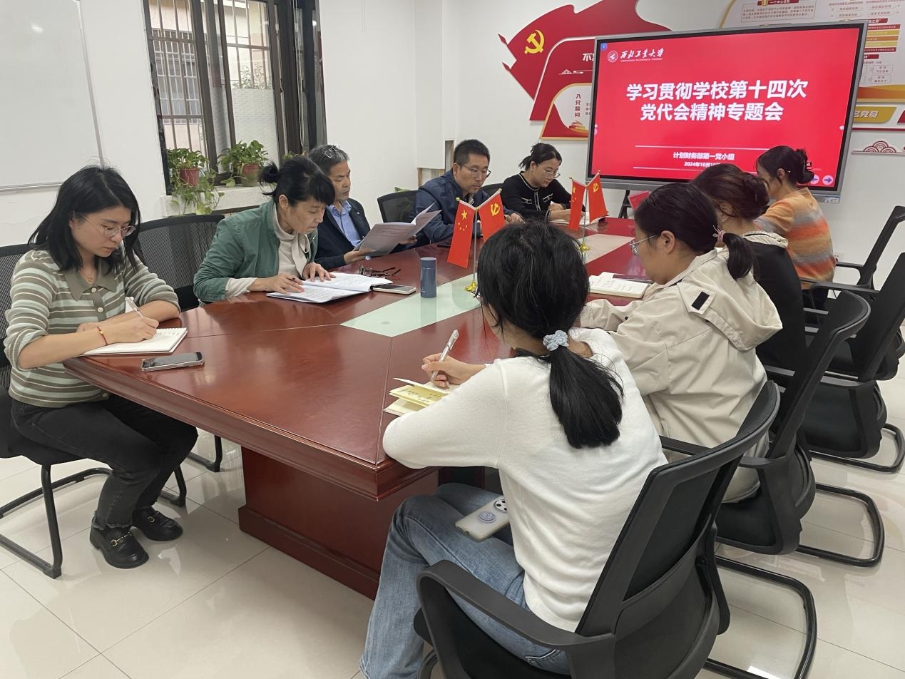 10月10日下午,计划财务部党支部四个党小组分别召开专题学习会,传达学习学校第十四次党代会精神,会议由各党小组组长主持,全体党员和青年理论学习小组成员参加了会议。