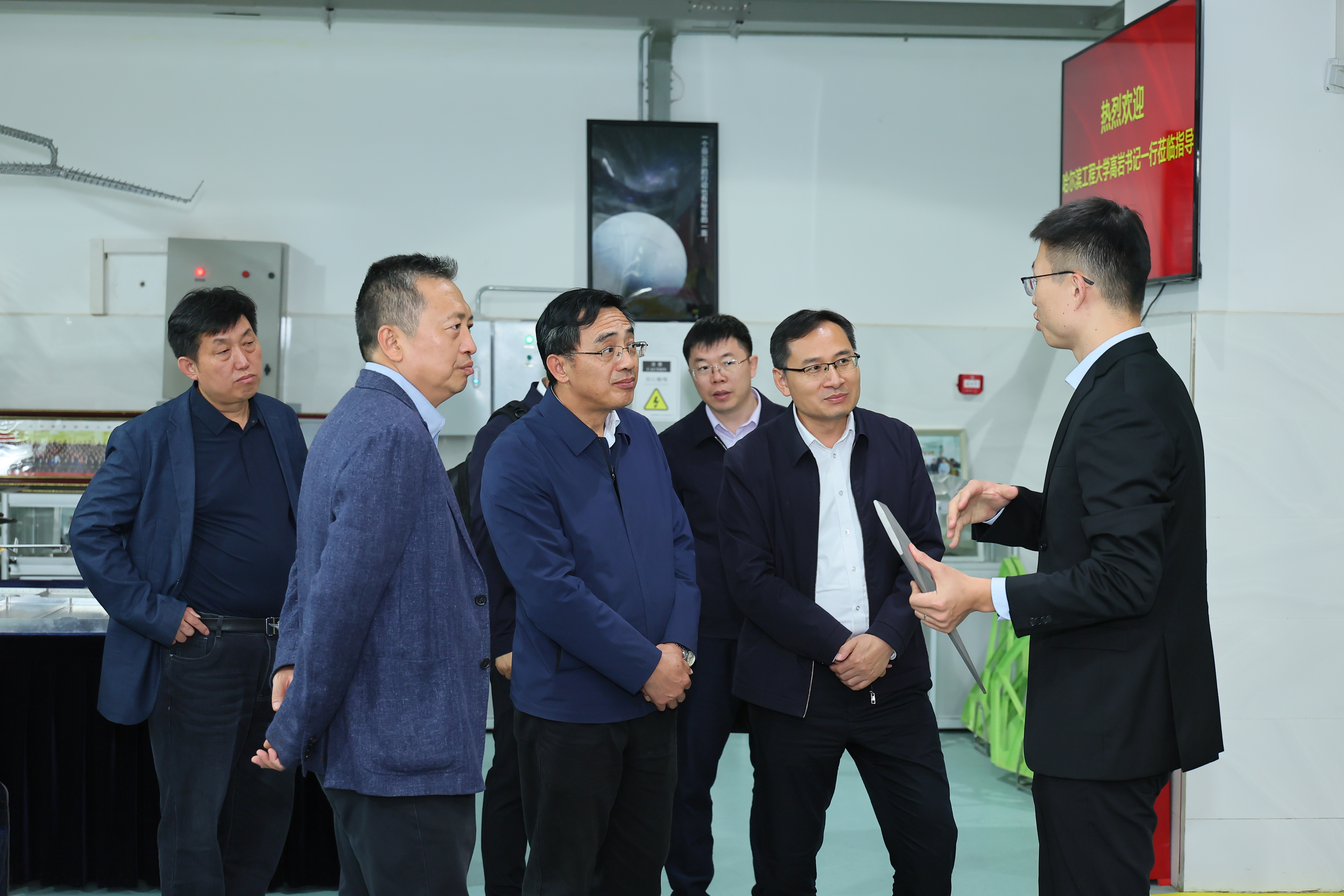 10月11日,哈尔滨工程大学党委书记高岩,副校长於志文,党委常委、组织部部长李荣生一行来校调研。taptap点点党委书记李言荣与高岩一行进行座谈。副校长侯成义参加相关活动并主持座谈会。